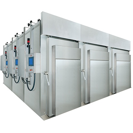 ● 采用模塊化箱體結構,排布形式靈活。提供單排或者雙排布置,可以單方向進(jìn)出推車(chē),也可以做成通道式前后開(kāi)門(mén),并且加裝生熟區互鎖裝置。